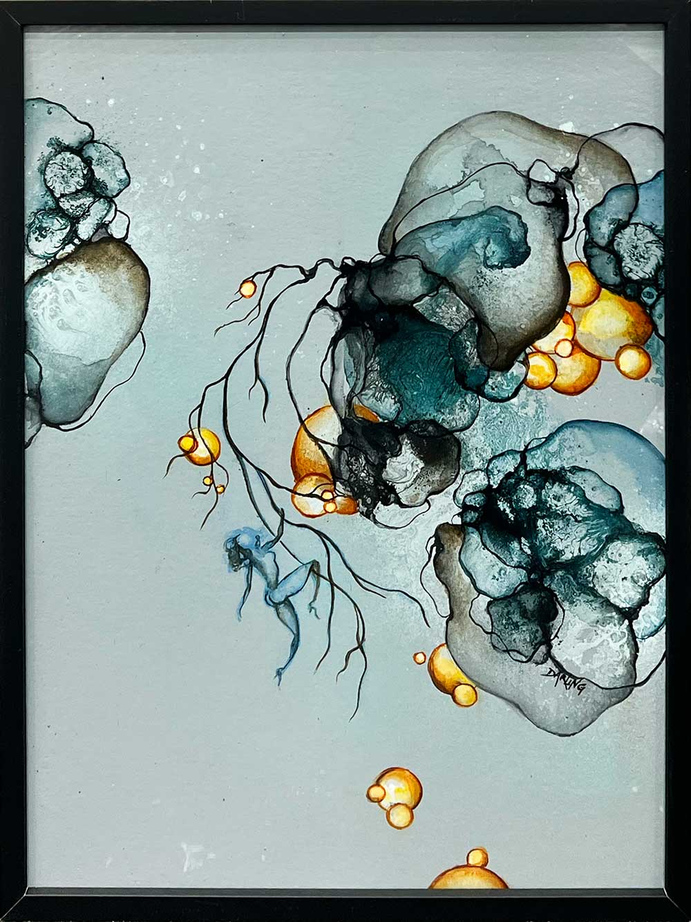 Et originalt unika maleri malet på lærredsplade og indrammet i træramme uden glas.